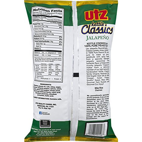Utz Kettle Classics Jalapeno Crunchy Potato Chips 8 oz. Bag (4 Bags)